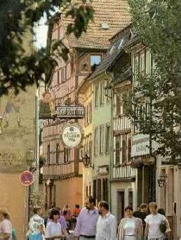 Das Neckartal ist reich an Kostbarkeiten der Baukunst aus vielen Jahrhunderten. Ein Kleinod darunter ist Eberbach: Eine Stadt mit Tradition und historischen Gebäuden, eine Stadt voller Leben, die man erleben und entdecken muss. Stolze Bürgerhäuser mit kunstvollem Fachwerk und schönen Malereien säumen die Straßen und Gassen. Mächtige Mauern und wehrhafte Türme umschließen die liebevoll restaurierte, verkehrsberuhigte Altstadt. Bei einem Bummel durch die winkligen Gassen und über die kleinen Plätze genießt der Gast das heitere Leben in der alten Stauferstadt und hat Gelegenheit, die badische Gemütlichkeit kennen zu lernen. |